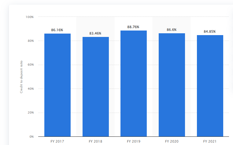 This source of funds is comparatively cheap as well. The cost of deposits in FY 2021-22 was 3.56% and reduced from 4.15% in FY 2020-21. “Cost of Deposits is the ratio of interest expense on deposits to a daily average of total deposits”.