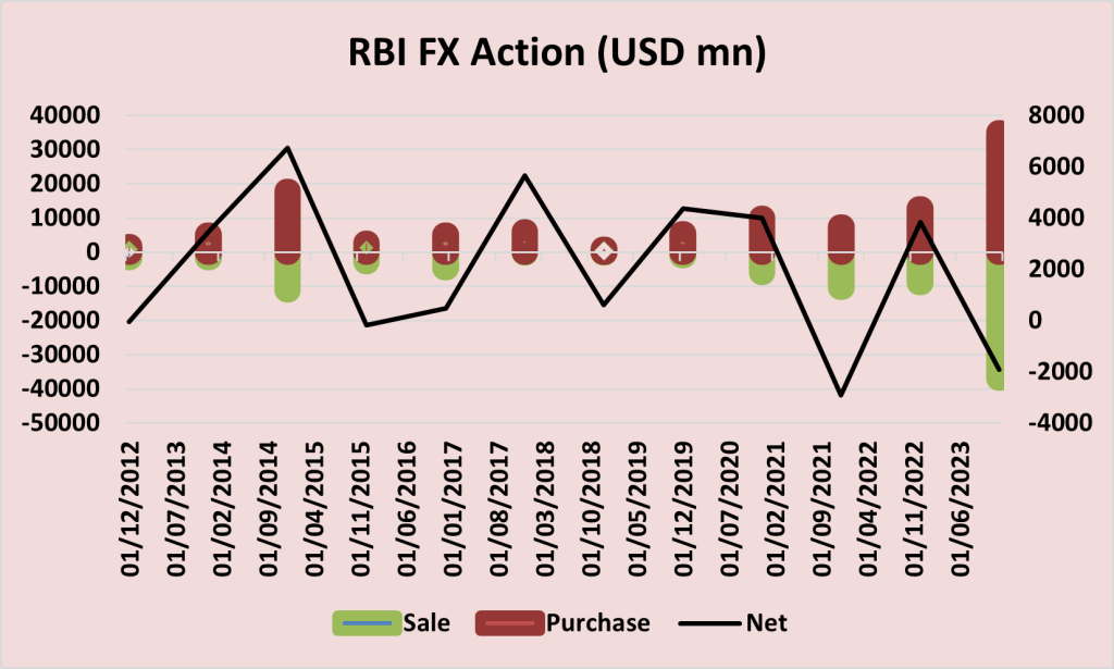 The FX purchase and sale data clearly indicates that RBI has been more active over the recent year.